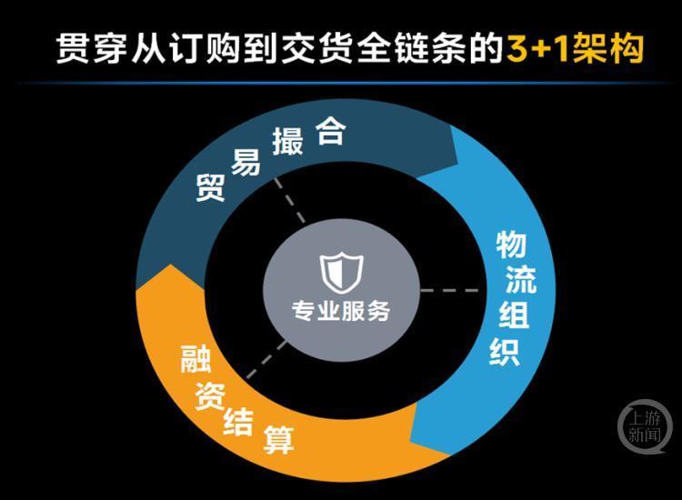 体系按“3+1”架构搭建,涵盖贸易撮合、物流组织、融资结算和专业服务四大板块,其中贸易、物流、金融“三合一”为核心功能,专业服务全程保障。平台由政府侧与市场侧共同打造,政府侧依托政务数字化应用和数字金融服务平台提供支撑,市场侧聚合各类相关平台与企业,推动各功能深度融合。